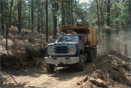 war, mussten wir öfter anhalten und die voll beladenen Holzlaster vorbei lassen.